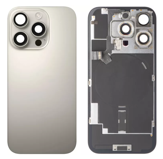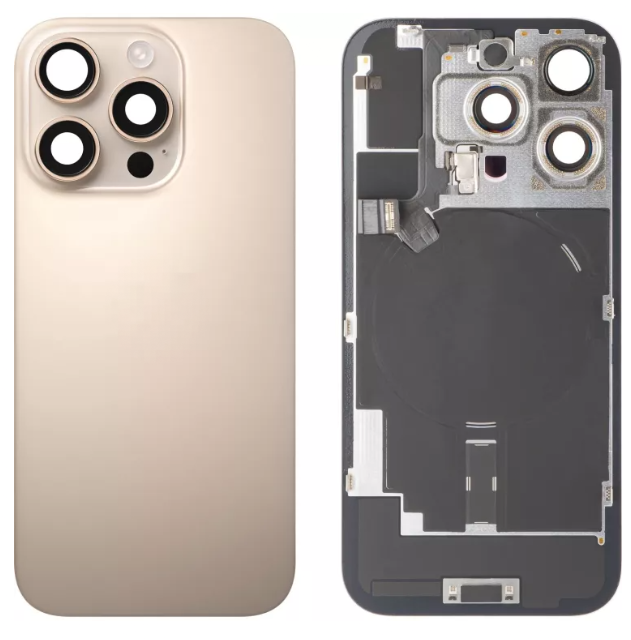 Apple iPhone 16 Pro Backcover Glass – With Camera Frame + Iron Plate + Wireless Charging Flex + Flash Light Flex – Natural