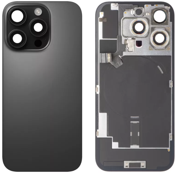 Apple iPhone 16 Pro Backcover Glass – With Camera Frame + Iron Plate + Wireless Charging Flex + Flash Light Flex – Black