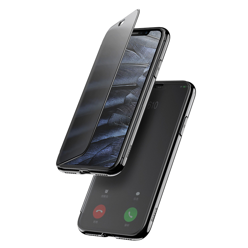 Baseus Apple iPhone X/iPhone XS Touchable Vieuw Hybrid Flip Cover – Black Matt