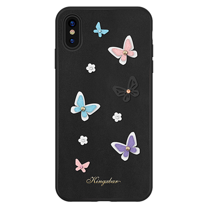 Kingxbar Apple iPhone XS Max – 3D Crystals PU Leather Case – Butterfly Black