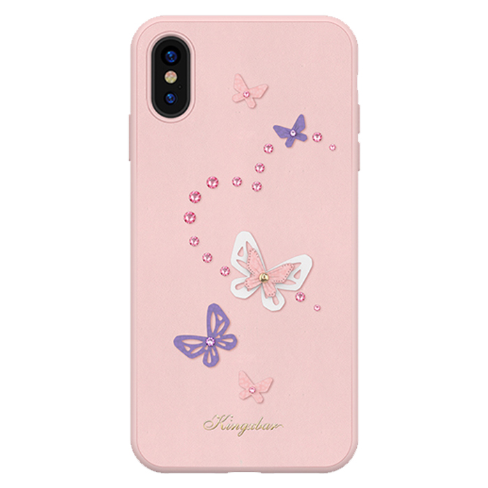 Kingxbar Apple iPhone XS Max – 3D Crystals PU Leather Case – Butterfly Pink