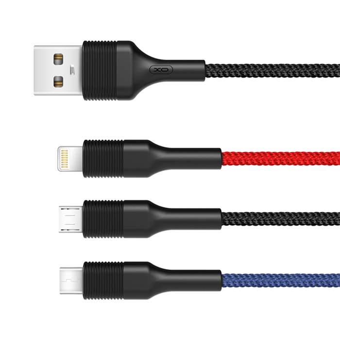 XO 3 in 1 Fast Charge USB Cable – Micro + Lightning + Type-C – NB54