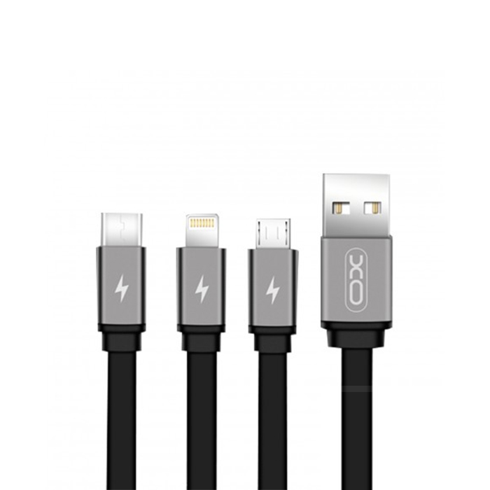 XO 3 in 1 Charge USB Charge Cable – Micro, Lightning and Type-C Connectors incl. – NB18 – Black