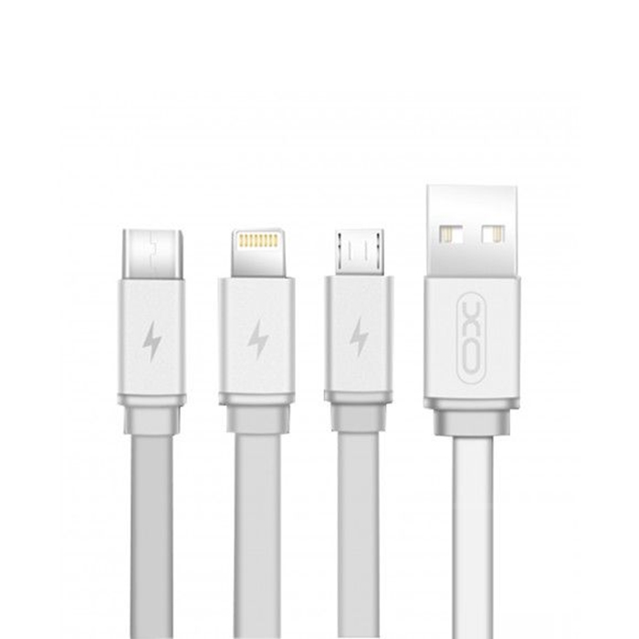 XO 3 in 1 Charge USB Charge Cable – Micro, Lightning and Type-C Connectors incl. – NB18 – Silver