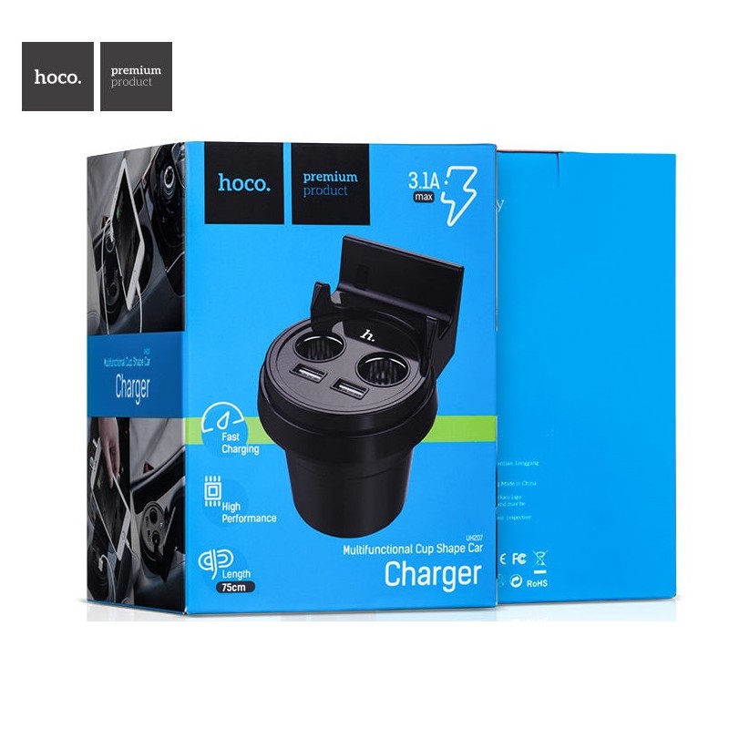 Hoco UC207 Multifunctional Car Cup Charger – 3.1A – Black