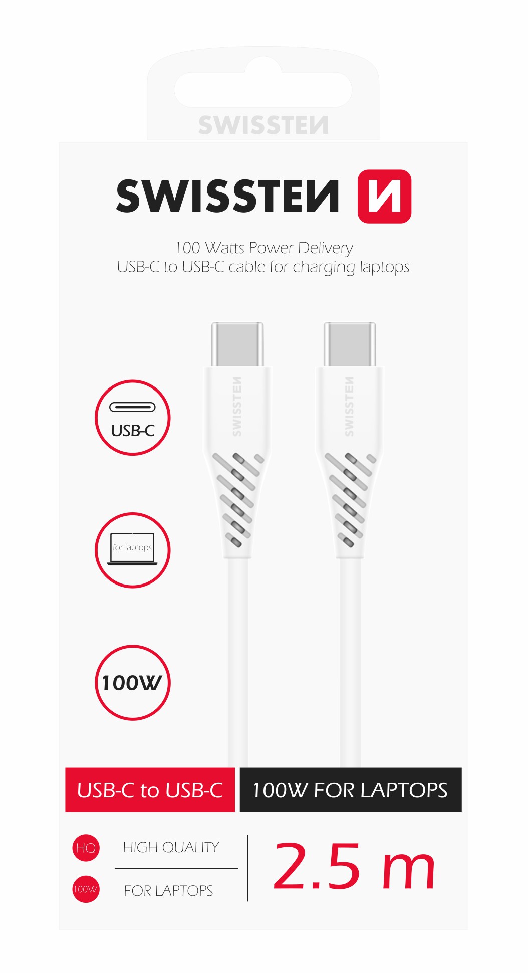 Swissten 5A Power Delivery Type-C To Type-C USB Cable (100W) – 71506530 – 2.5m – White