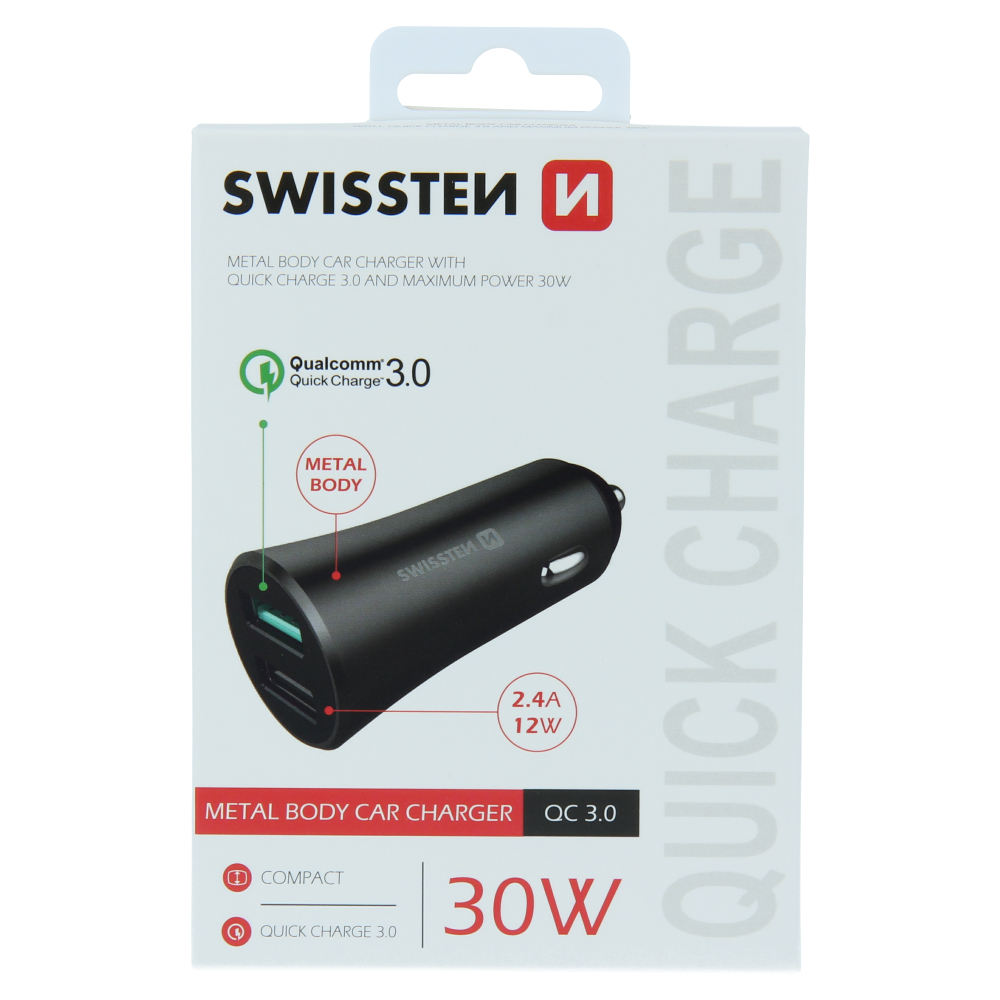 Swissten 2.4A Quickcharge (30W) Car Charger – 20111650 – Black