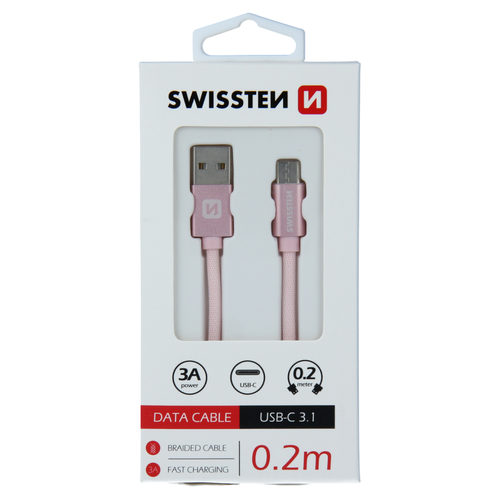 Swissten Textile Type-C USB Cable – 71521105 – 0.2m – Rose Gold