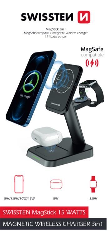 Swissten Magstick Wireless Charger 3 in 1 – 22055508 – Magsafe Compatible