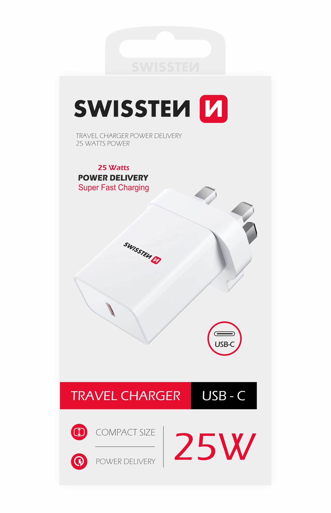 Swissten USB-C UK Travel Charger (25W) – 22045400 – White