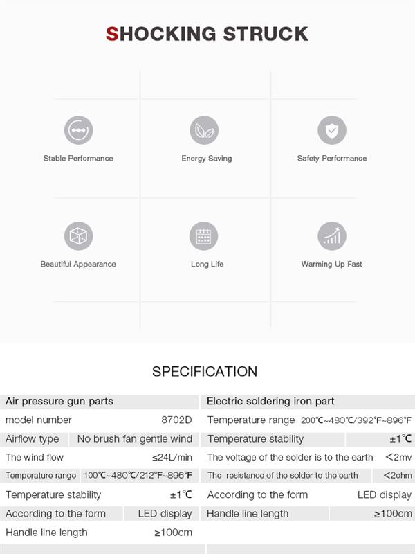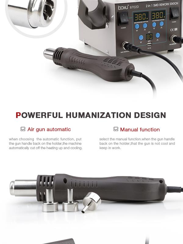 – Heat gun in the automatic function of the state under the security function, the wind gun handle on the original handle stop working, and then lift to work properly.