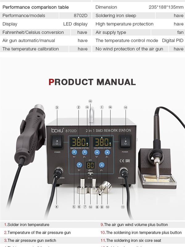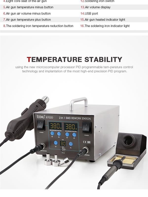 – Soldering iron, hot air gun and power supply with independent dual-core micro-controller control, independent work, even if all the way to the problem does not affect, but the other way the normal work.