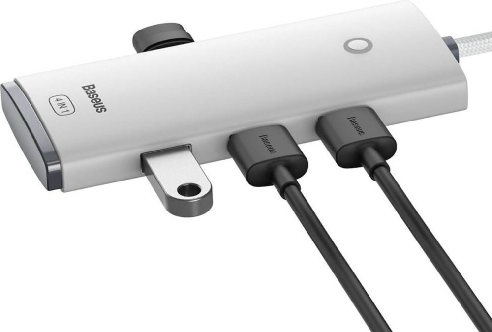 De Baseus HUB Lite Series 4-in-1 adapter (Type-C naar 4xUSB-A 3.0 5Gb/s) kabel van 1 meter in het stralende wit (model WKQX030402) is de perfecte oplossing voor het uitbreiden van de connectiviteit van jouw apparaten. Deze veelzijdige adapter stelt je in staat om meerdere USB-A apparaten aan te sluiten op een enkele Type-C poort met hoge snelheidsoverdracht. Met zijn duurzame constructie en handige kabelontwerp, brengt deze adapter gemak en efficiëntie naar jouw dagelijkse digitale leven.
