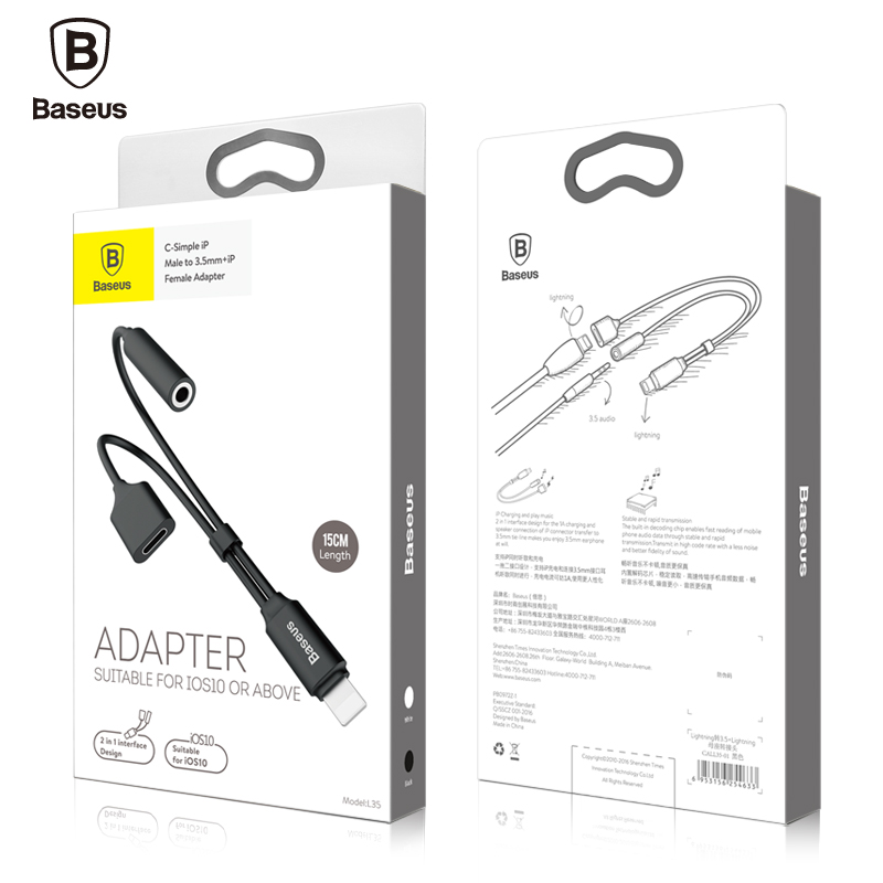 Baseus L35 Multifunctional Lightning Man 3.5mm Jack + female Earphone Headset Mic Audio 2 in 1 Adapter Cable Line
