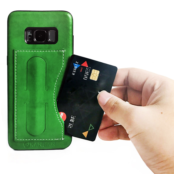 Kanjian Samsung G955F Galaxy S8 Plus Business Card Backcover Slot Leather – Green