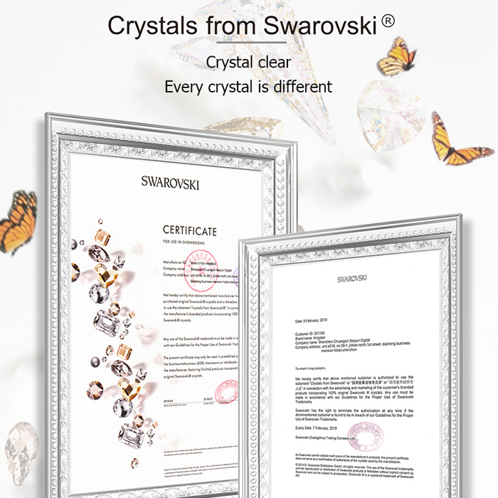 Made of high quality plastic material, coated with a layer of PU leather skin, anti-fingerprint and anti-scratch. 3D butterfly design is decorated with authorized Swarovski elements, showing sparkling and deluxe style. Heightened camera hole protects camera from scratches. Precisely measured and manufactured cutouts allow access to all buttons and ports.