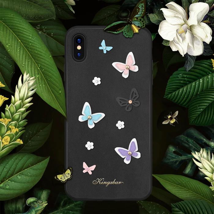 Kingxbar Apple iPhone XS Max – 3D Crystals PU Leather Case – Butterfly Black