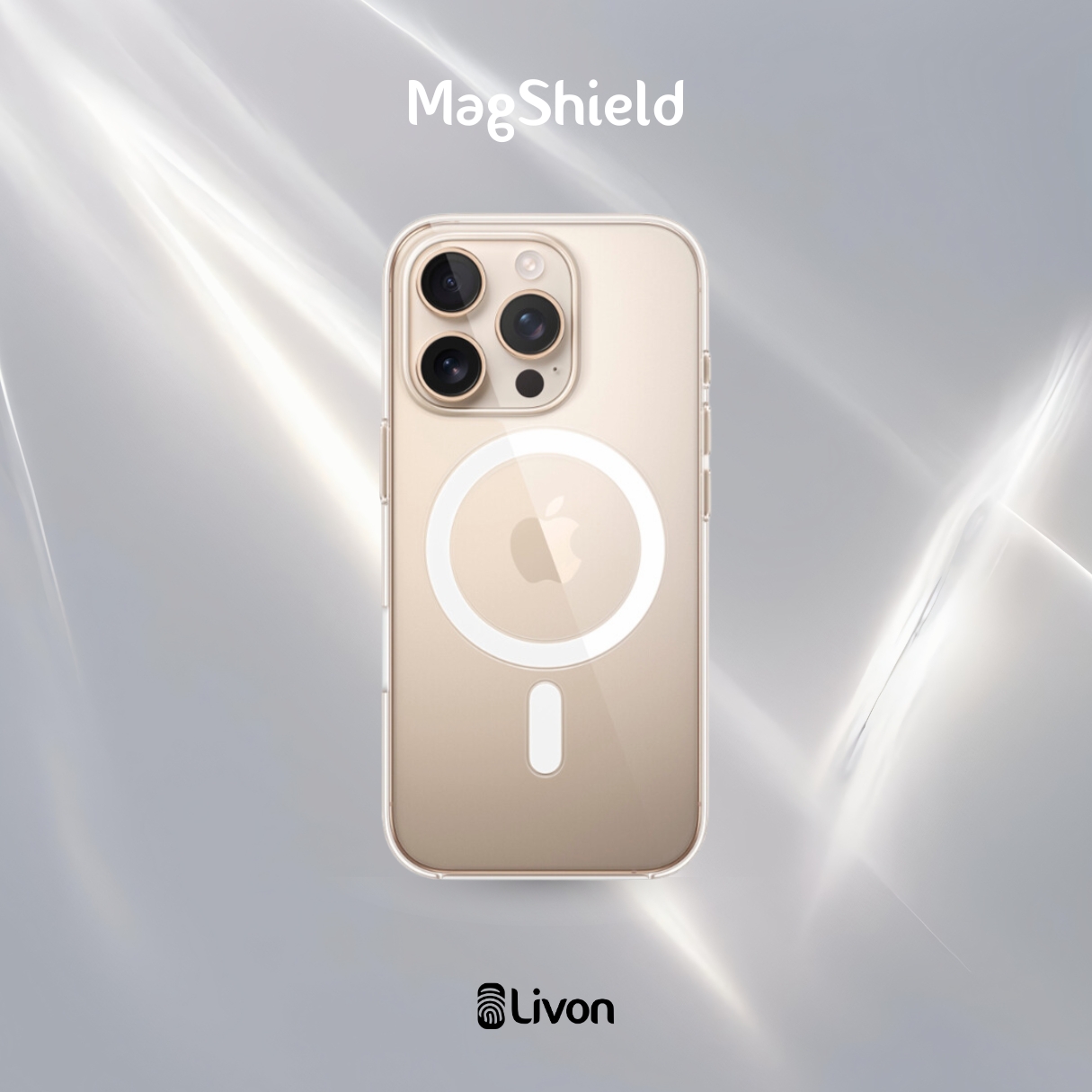 Livon iPhone 17 Pro Livon MagShield hoesje gemaakt van stevig kunstof materiaalen schokbestendige randen. Ingebouwde MagSafe functie, maakt je gemakkelijk gebruik van MagSafe producten. Het hoesje is op