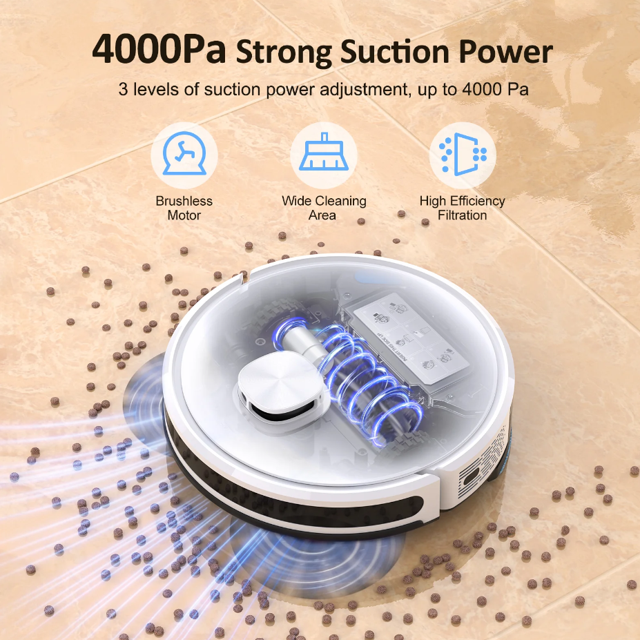 Uitgerust met een krachtige 4000Pa zuigkracht, zorgt de SL60D voor diepgaande reiniging op alle oppervlakken. Zijn slimme tapijtdetectie past automatisch de zuigkracht aan voor grondige tapijtreiniging, terwijl de borstelloze motor efficiënt stof, huisdierenhaar en vuil verwijdert van tapijten en kieren.