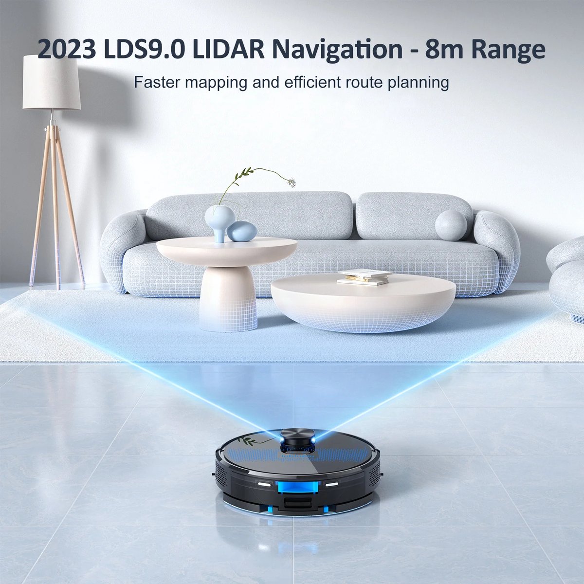 Zeg vaarwel tegen willekeurige schoonmaakpatronen en hallo tegen systematisch schoonmaken met de Laser Distance Sensor (LDS) 9.0 Lidar cartografie en SLAM-navigatie van de SL60D. Deze innovatieve technologie stelt de robotstofzuiger in staat om tot wel 5 nauwkeurige kaarten van je huis te maken, waardoor grondige dekking gegarandeerd is met 3x betere nauwkeurigheid dan gewone LDS. Met een laserbereik van 8 meter kan hij door complexe omgevingen navigeren en optimale schoonmaakroutes plannen, zodat geen hoekje onaangeroerd blijft.