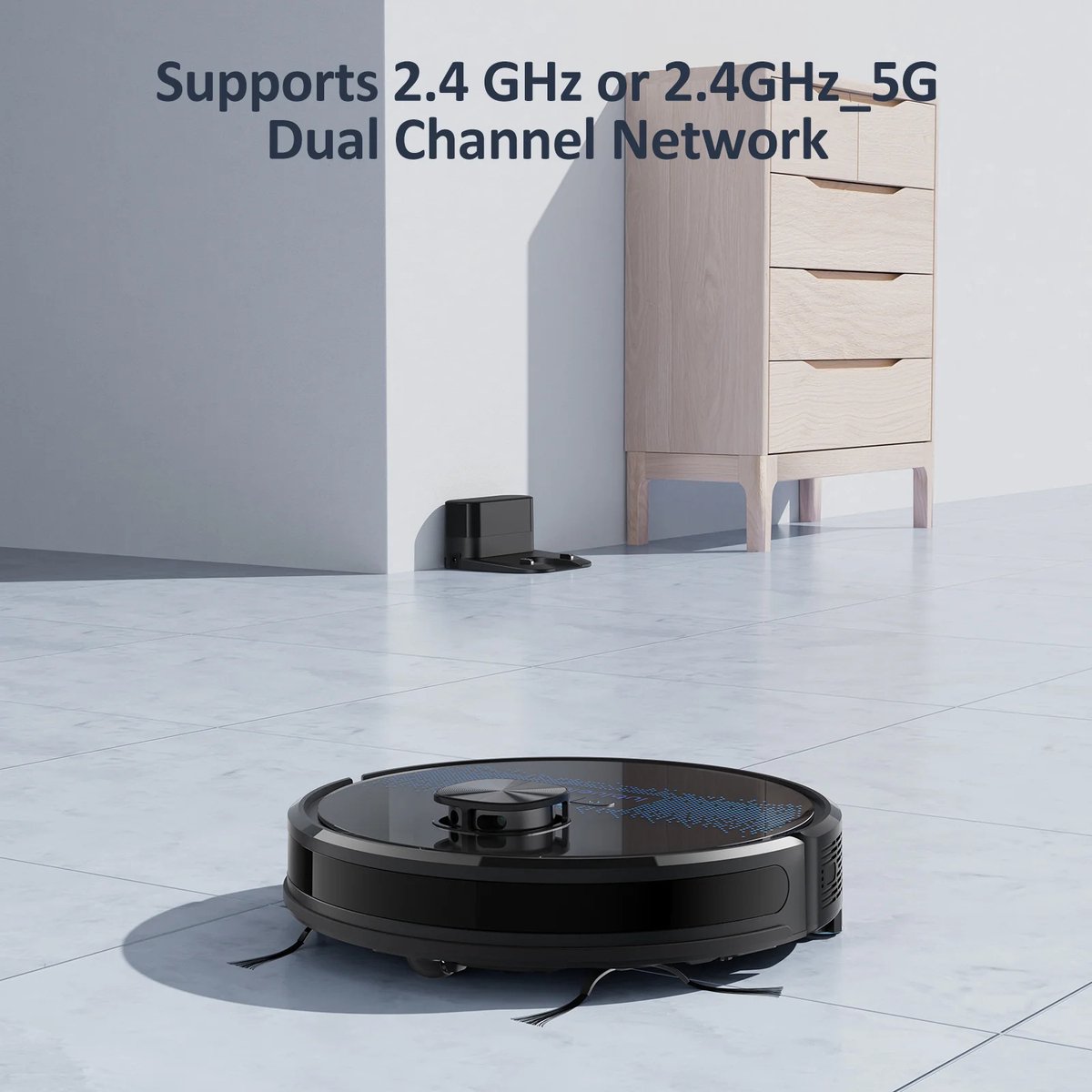 Neem controle over je schoonmaakschema met de Smart Life-app en spraakopdrachten. Of je nu thuis bent of onderweg, je kunt het schoonmaakproces eenvoudig volgen en aanpassen. Gebruik gewoon de app of spraakopdrachten met Alexa of Google Assistent om het schoonmaken te starten of stoppen op basis van je aangepaste kaart. Bovendien is de ondersteuning voor zowel 2.4 GHz als 2.4GHz_5G Dual Channel Network, connectiviteit is nooit een probleem.