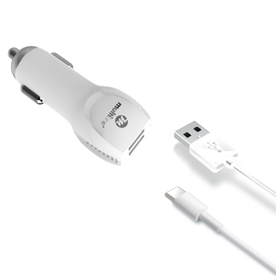 Multiline Dual Power USB Car Charger 2h4A – incl. Lightning USB Cable