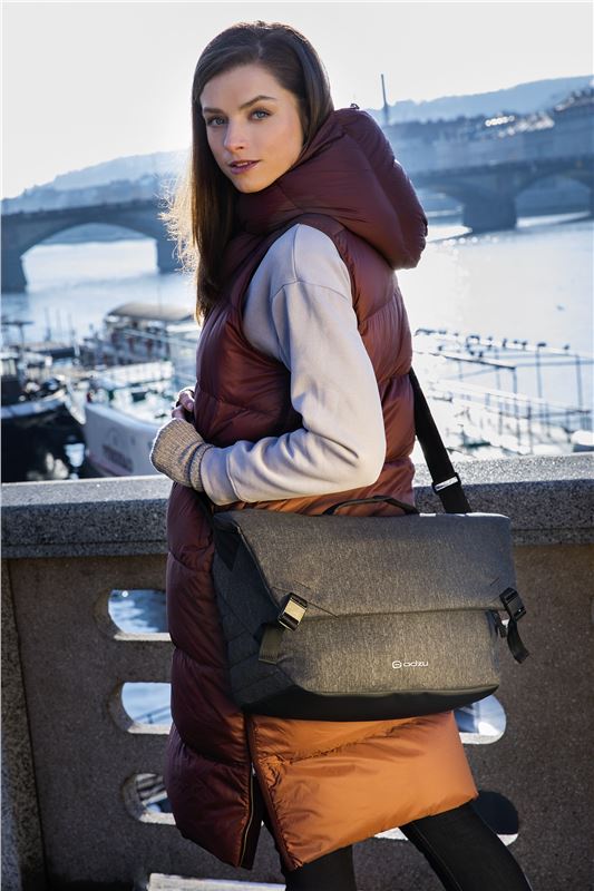 A versatile bag with a modern design and the ability to change its volume up to twice as much as needed. Maximum possible materials are recycled RPET Polyester and RPET Nylon. Nine separate compartments, a standby smartphone pocket, magnetic closure and holding flap make everyday use easier. Designers from BOA Design and Czech Design contributed to the design.