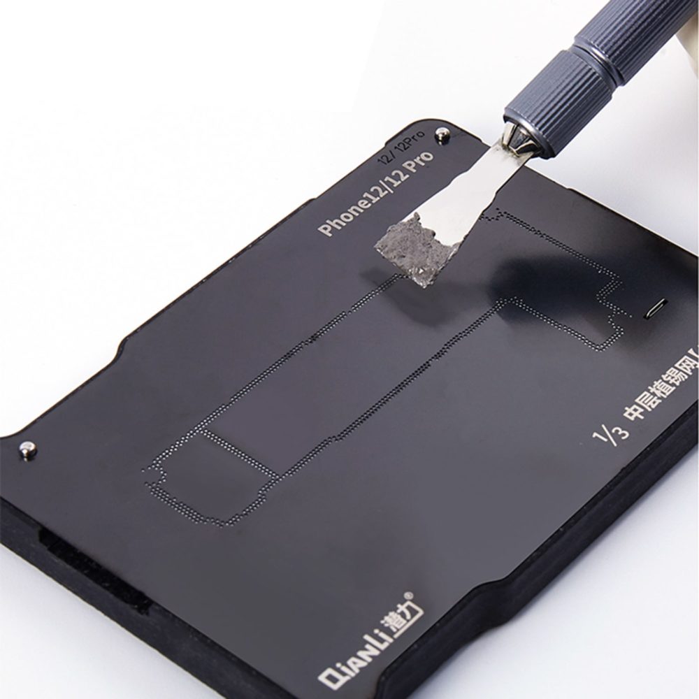 QianLi iPhone Middle Frame Reballing Platform for iPhone 12 motherboard soldering tool, QianLi iPhone Middle Frame Reballing Platform for iPhone 12 logic board dissembling and assembling testing tool.
