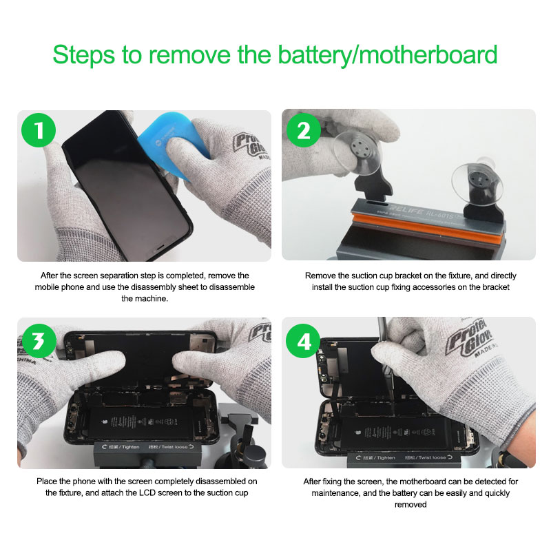 Efficient – This tool allows you to remove a broken back glass much faster and more efficiently ,the clamp fits with silicone pads to stop additional damage to the phone.