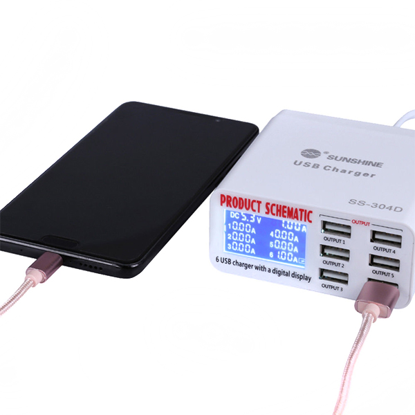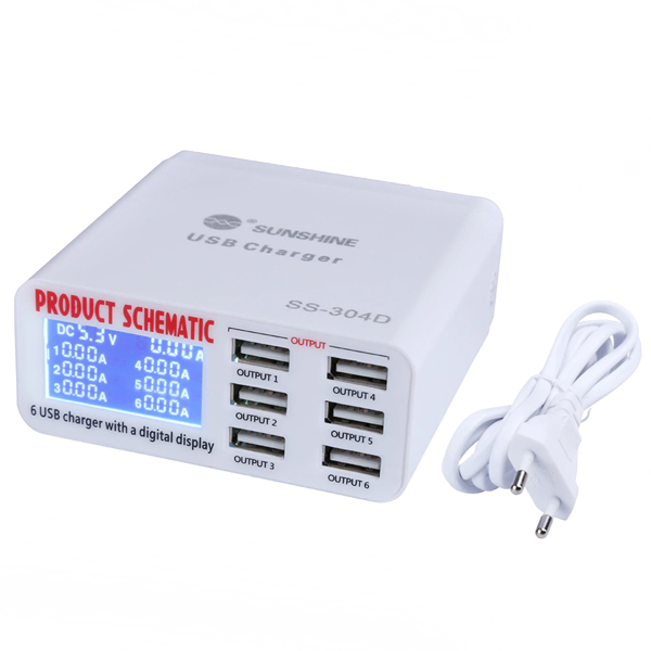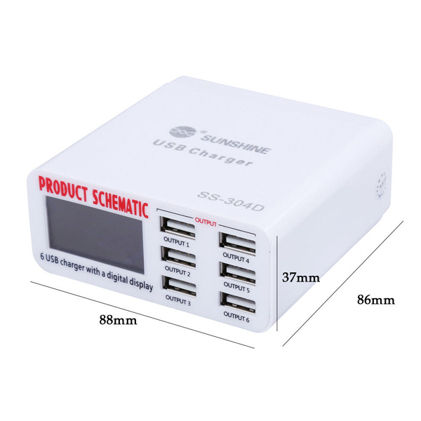 Output Current: Single-port USB output maximum 3.5A, 6 USB ports total maximum output 6A.