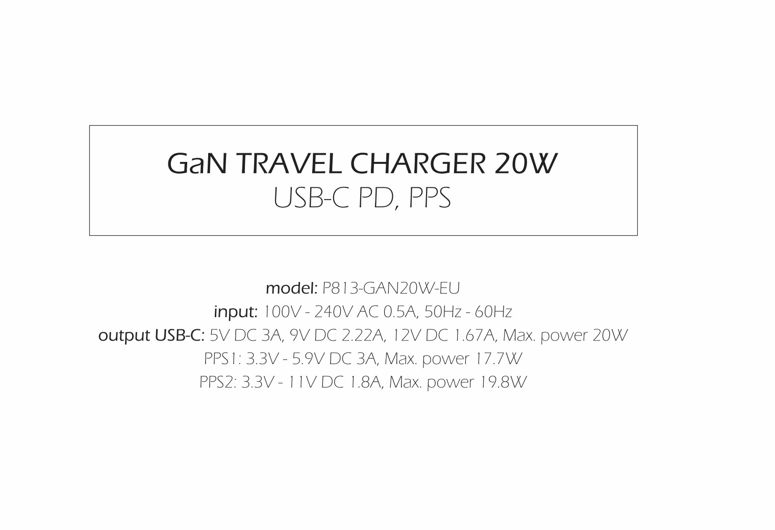 - USB-C: 5V DC 3A, 9V DC 2.22A, 12V DC 1.67A, 20W Max