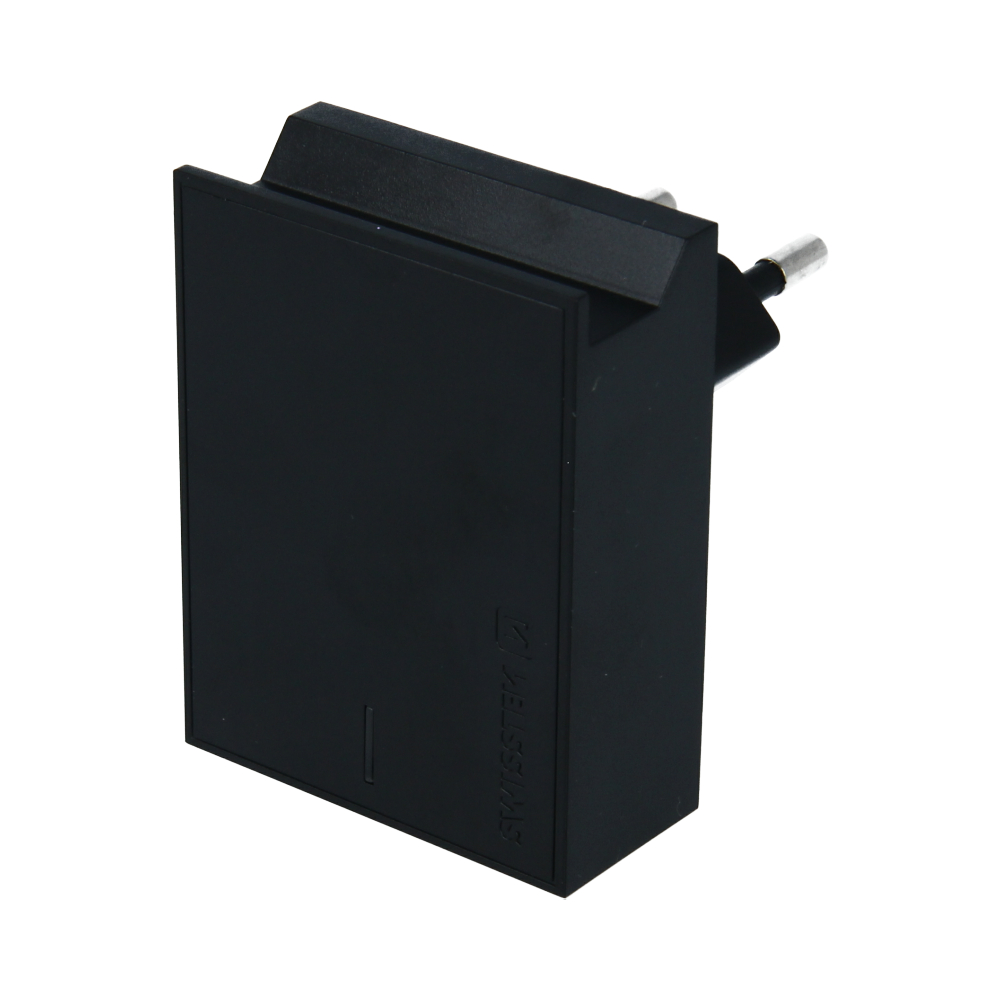 The ultra-thin Swissten SMART IC network adapter has 2 USB ports and a total output current of 3A. So you can easily charge two devices at once. Thanks to SMART IC moreover optimally distributes the output current from each device charging. You can use the charger as a mobile phone stand while charging. Package contains 1.2m USB / LIGHTNING data cable with MFi certification. Color black. Packed in Swissten retail pack.
