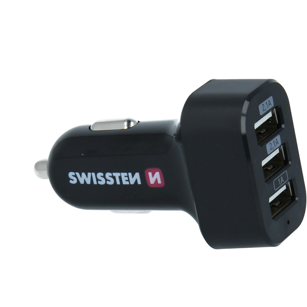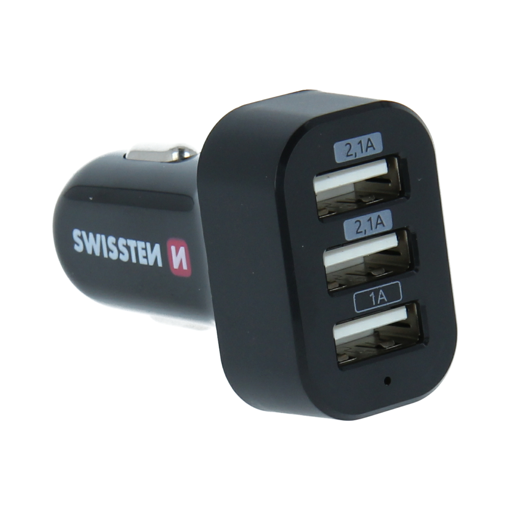 High-quality car cherger adapter from the fashion series SWISSTEN. Optimal charging solution for your home car. With up to 5.2A current options and three available USB ports (2.1A, 2.1A and 1A), you can now charge up to 3 devices at the same time. Packed in Swissten blister