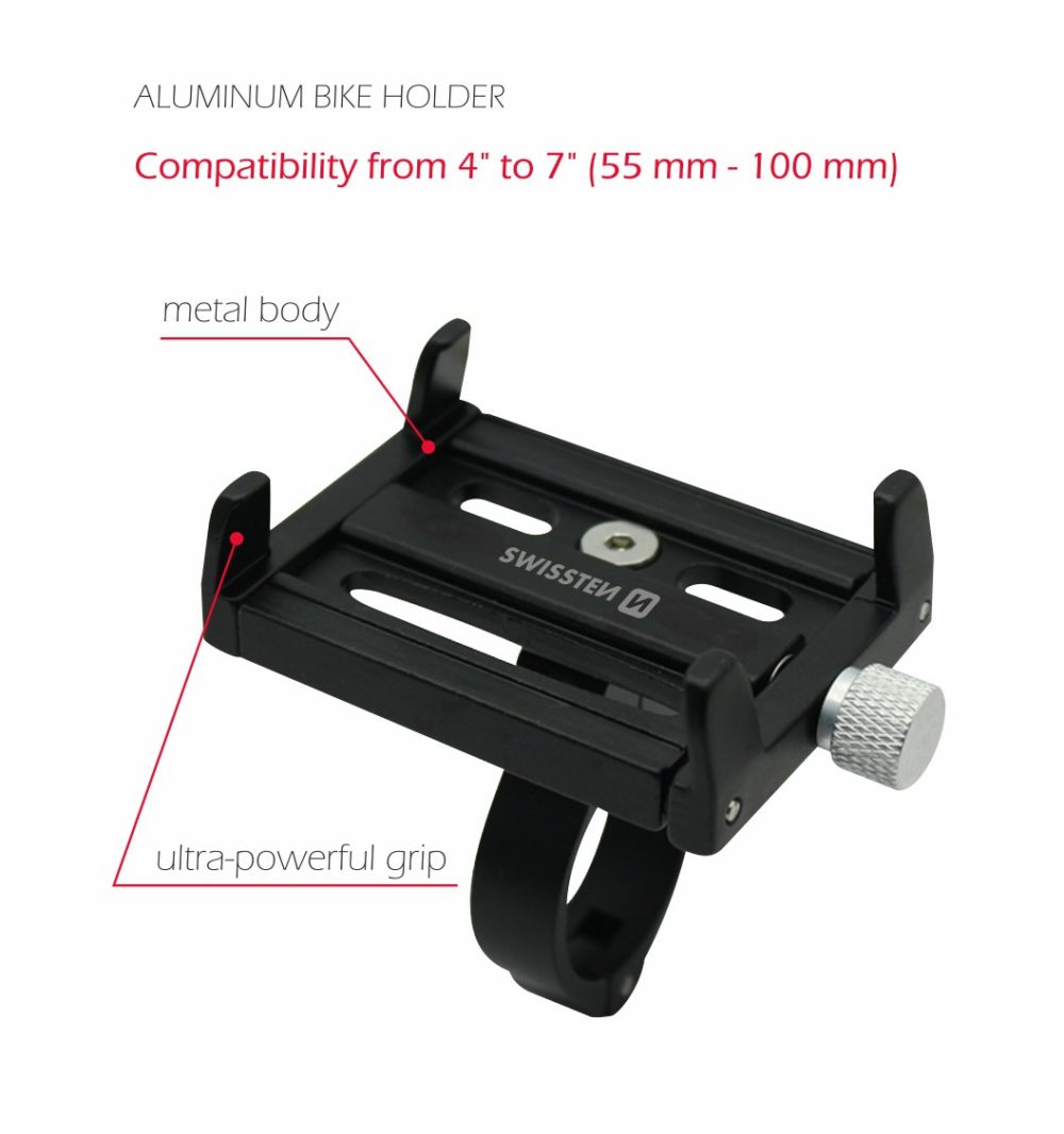 The SWISSTEN BM1 holder is made of aluminum, which gives it not only an elegant appearance, but also great durability when driving on uneven roads.