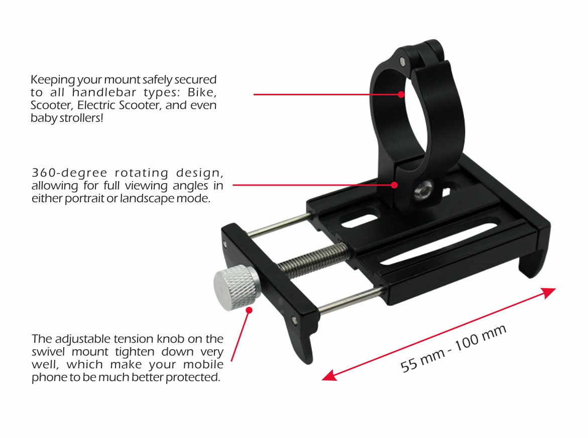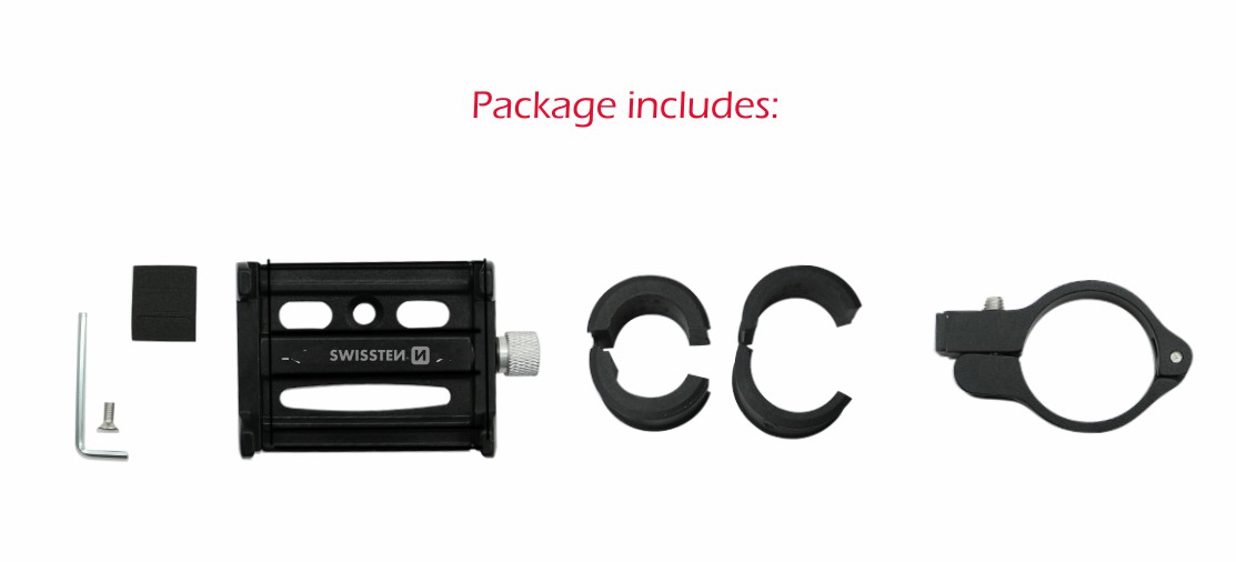 Metal holder for a 4-7 “smartphone, which can be used for bicycles, e-bikes, scooters, etc. SWISSTEN retail pack