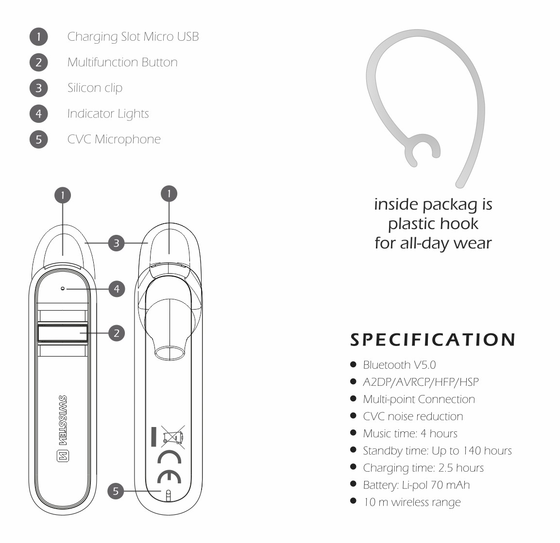 SWISSTEN CALLER headset weighs only 7 grams and you can use it full 4 hours of calls