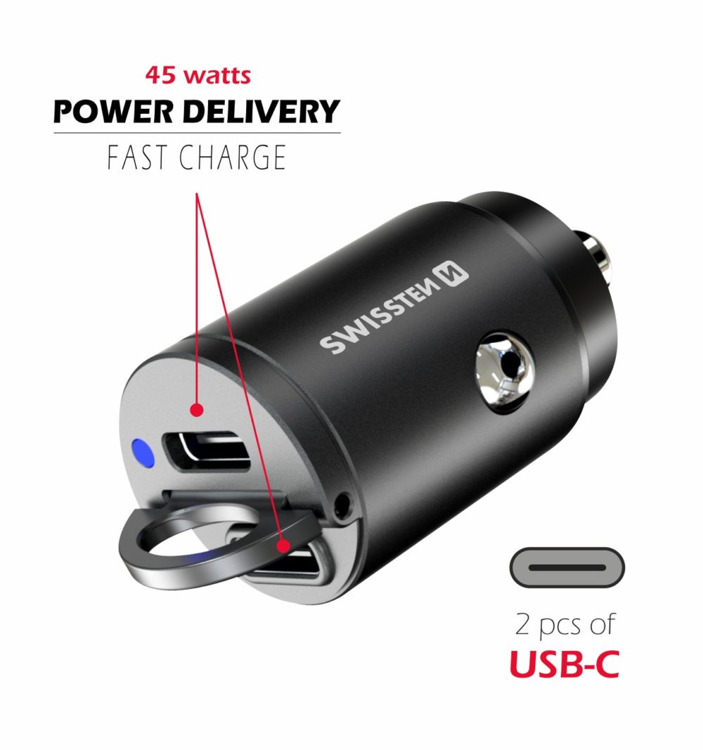 Swissten Car Charger – 2 USB-C – 20111900 – 45W – Fast Charge