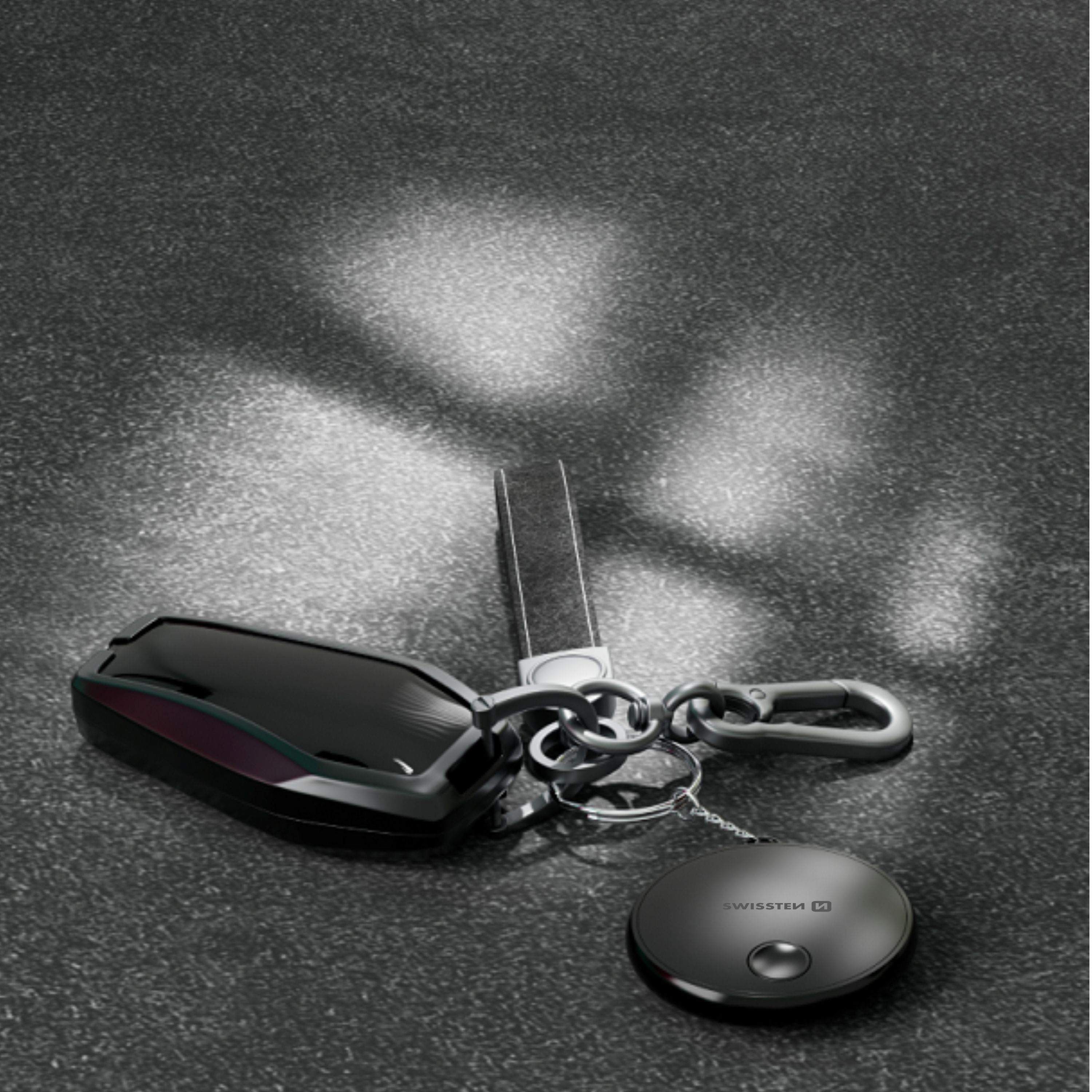 SWISSTEN Find Tag is a compact smart tracker that helps you easily locate lost keys, wallets, bags, or other valuables.