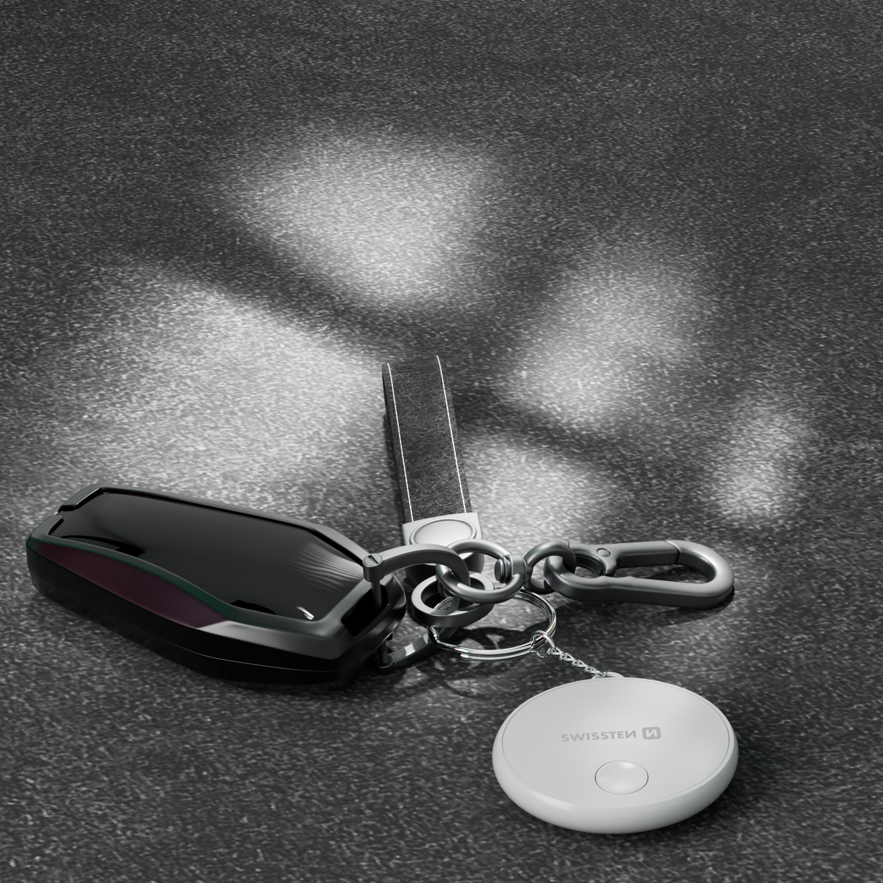 SWISSTEN Find Tag is a compact smart tracker that helps you easily locate lost keys, wallets, bags, or other valuables.