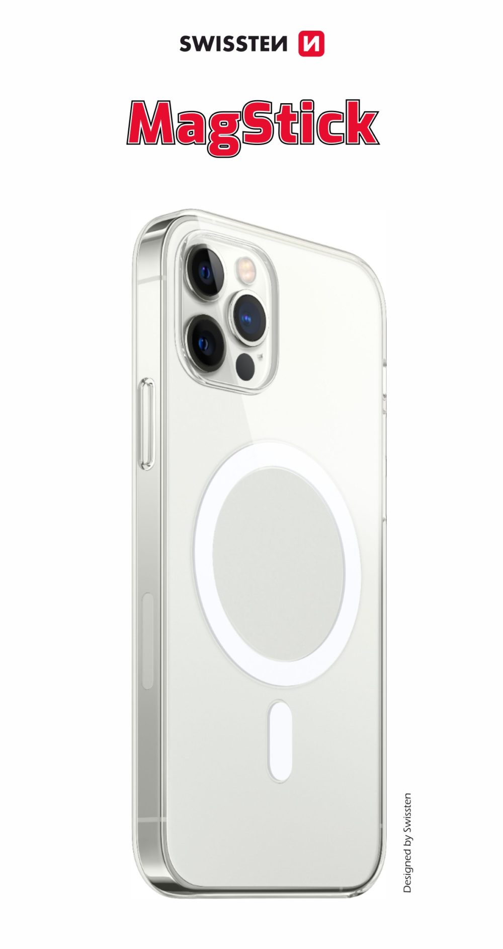 “Elegant clear case SWISSTEN MagStick suitable for MagSafe charging. SWISSTEN retail pack