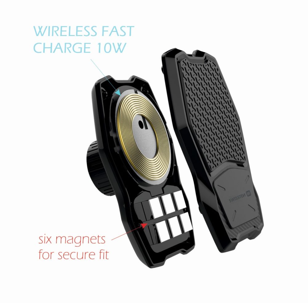 The SWISSTEN S-GRIP WM1-AV3 Car holder with Wireless Charging is designed for installation in a ventilation grid. The holder has a fast 10W charge. The magnet is located at the bottom. Packed in Swissten blister.
