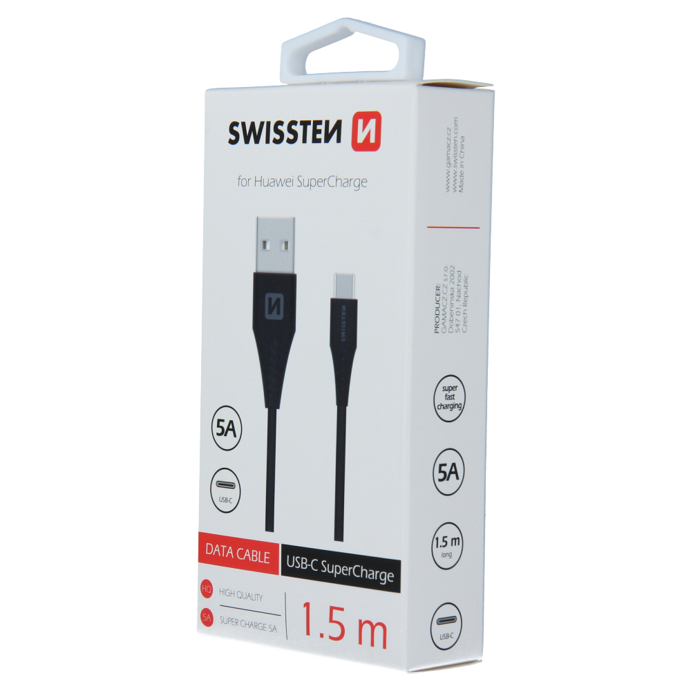 Swissten data cable is used to quickly charge Huawei smartphones that support SUPER FAST CHARGING 5A. Packed in Swissten retail pack. 8595217463783