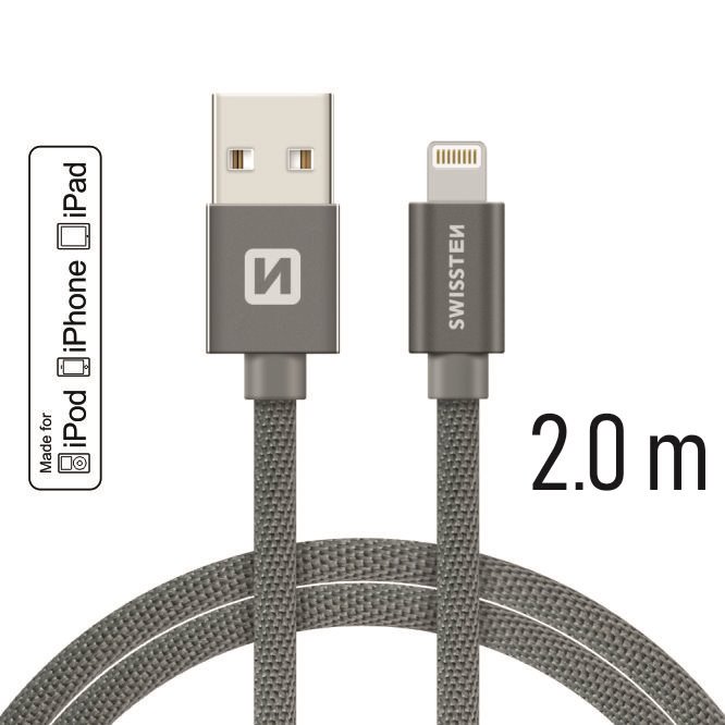 Swissten Textile MFI Lightning Cable – 71524302 – 2m – Grey