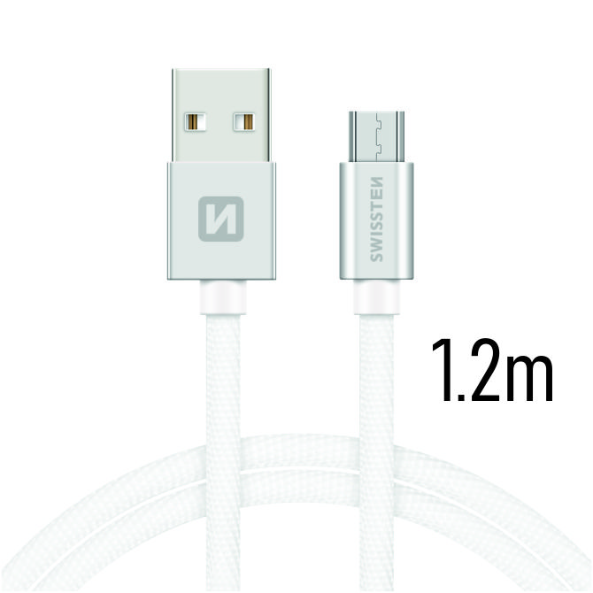 Swissten Textile Micro USB Cable – 71522203 – 1.2m – Silver