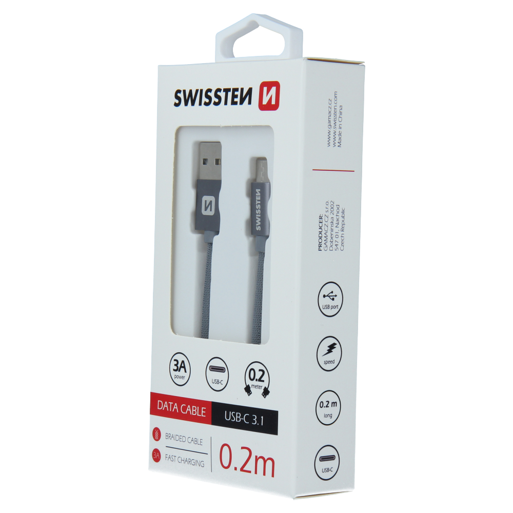 Swissten Textile Type-C USB Cable – 71521102 – 0.2m – Grey