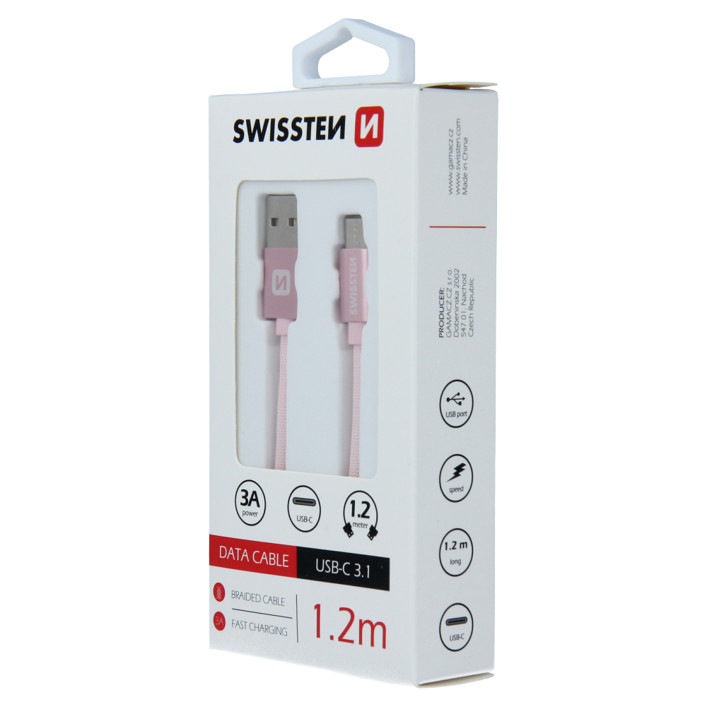 Swissten Textile Type-C USB Cable – 71521205 – 1.2m – Rose Gold