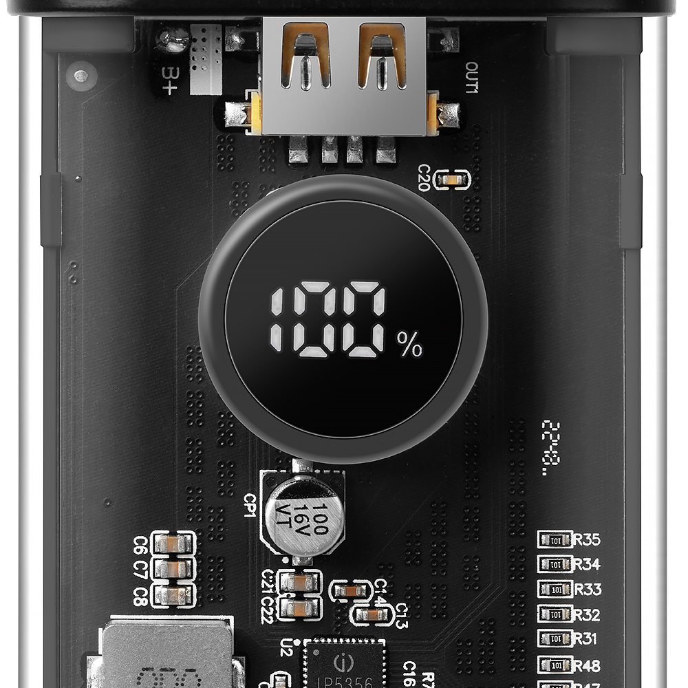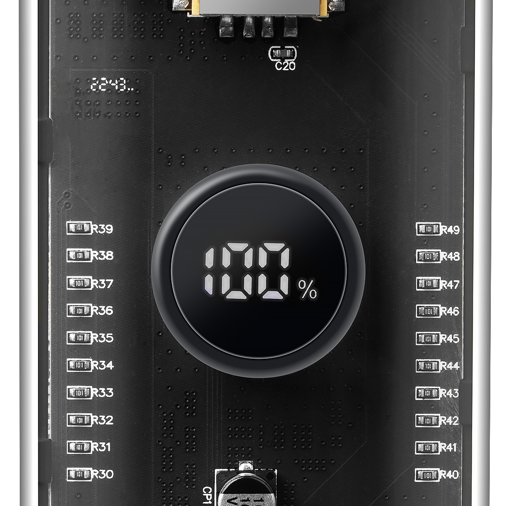 Tactical C4 Explosive power storage maakt gebruik van een ingebouwd display om je niet in de steek te laten. Na het indrukken van de bovenste knop toont het display automatisch hoeveel sap je nog hebt. Het interne systeem van de powerbank herkent het juiste moment voor snel opladen en toont een Power Delivery-icoon op het display zodat je weet dat je snel gaat.