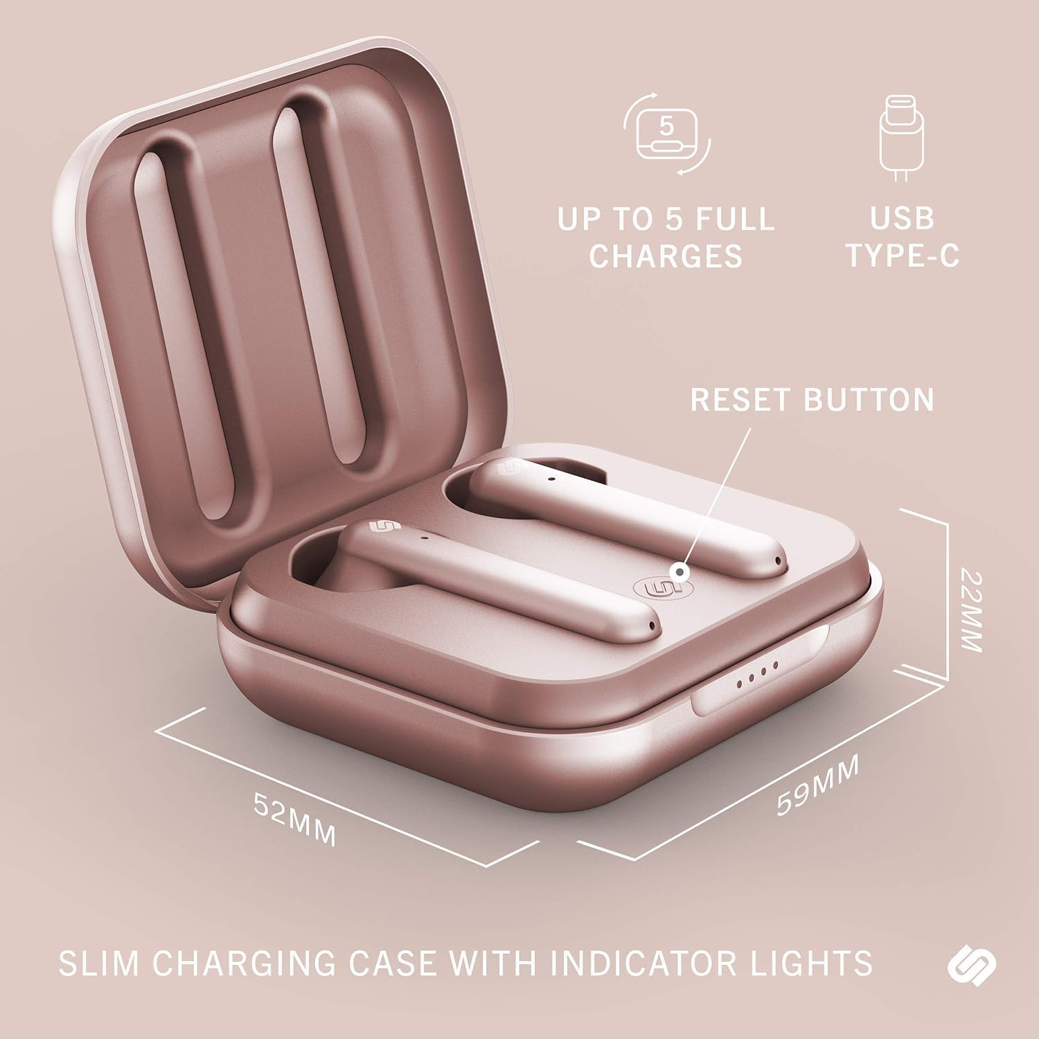 Met hun draadloze ontwerp bieden de Urbanista Paris-oortelefoons bewegingsvrijheid, zodat u kunt genieten van uw favoriete muziek en podcasts zonder gedoe met in de war rakende draden.