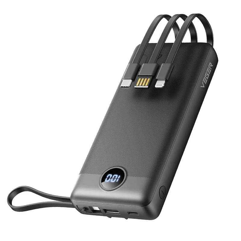 Veger (C20) Fast Charging Powerbank Built-in 4 Cables – 20.000mAh – Black