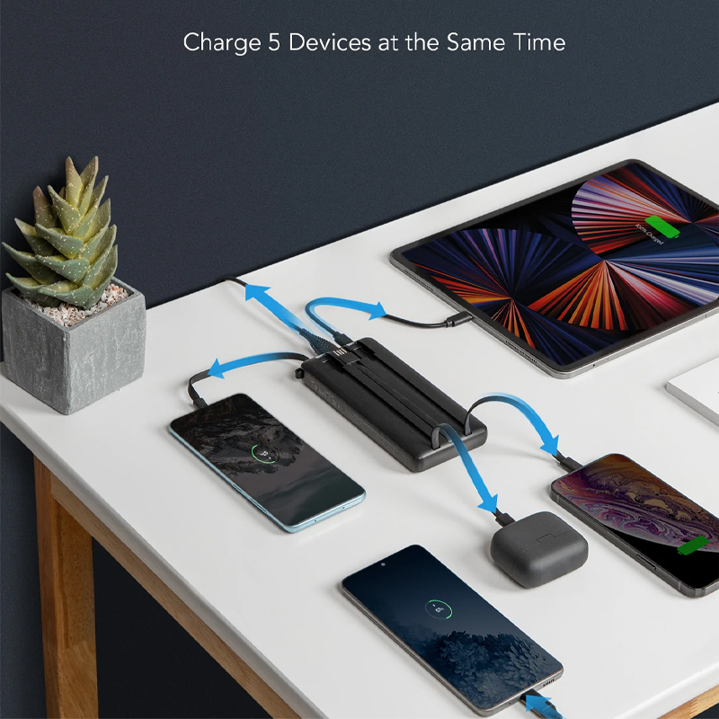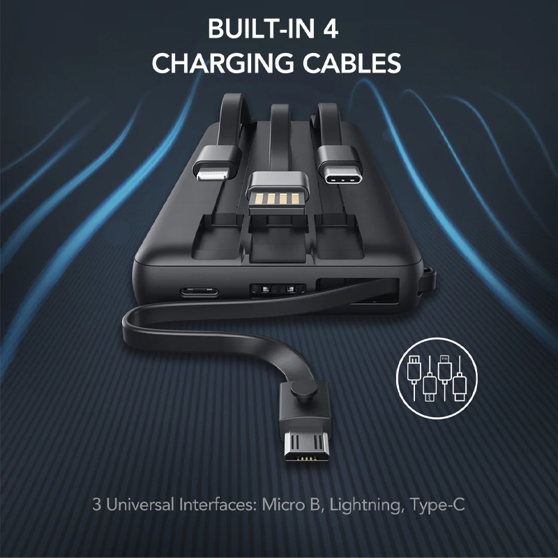 Portable Power Bank with Built-in Cables